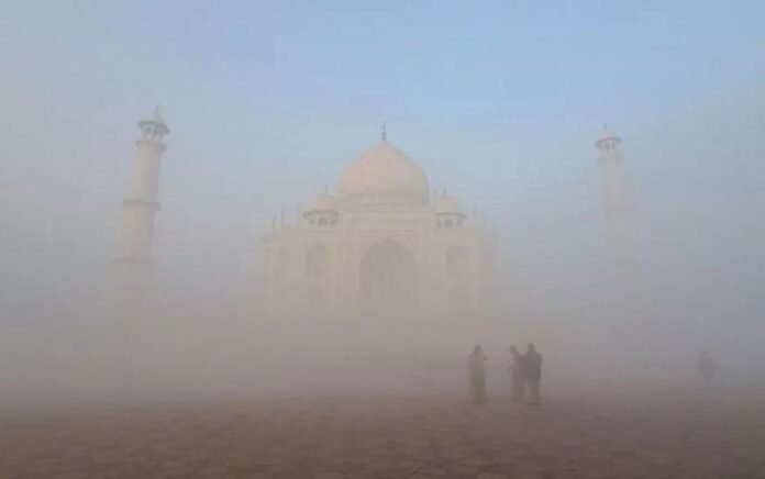 कोहरे में छिपा ताजमहल, कड़ाके की ठंड जारी, कई जगह विजिबिलिटी शून्य