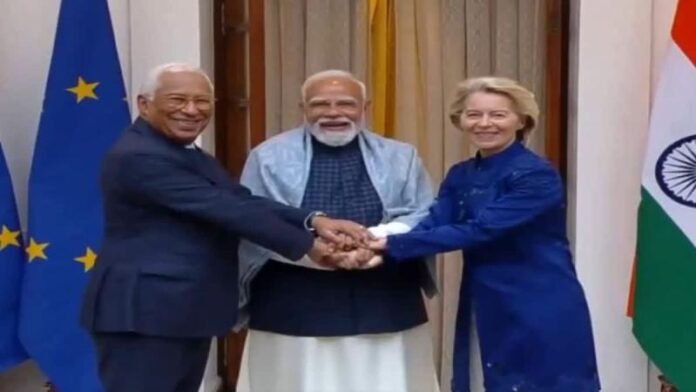 नई दिल्ली: भारत और यूरोपियन यूनियन के बीच आज ऐतिहासिक समझौते पर मुहर लग गई. जानकारी के मुताबिक लंबी बातचीत के बाद इस बहुत बड़ी डील को अंजाम दिया गया. इसे ‘मदर ऑफ ऑल डील्स’ भी कहा जा रहा है. बता दें, भारत और यूरोपियन यूनियन मिलकर विश्व व्यापार का लगभग पांचवां हिस्सा और दुनिया की आबादी का लगभग 25 प्रतिशत हिस्सा हैं, जो इस पार्टनरशिप के बढ़ते आर्थिक और रणनीतिक महत्व को दर्शाता है.
